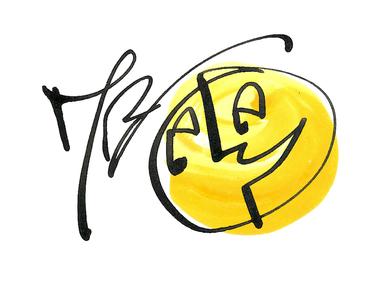 With more hand drawn work taking over my portfolio, I thought I'd create a logo incorporating my initials, this is how I signed my artwork since college, and added a sunshine smiley face. He was thoroughly occupying space in my sketchbooks, I was experimenting with expressions at the time.